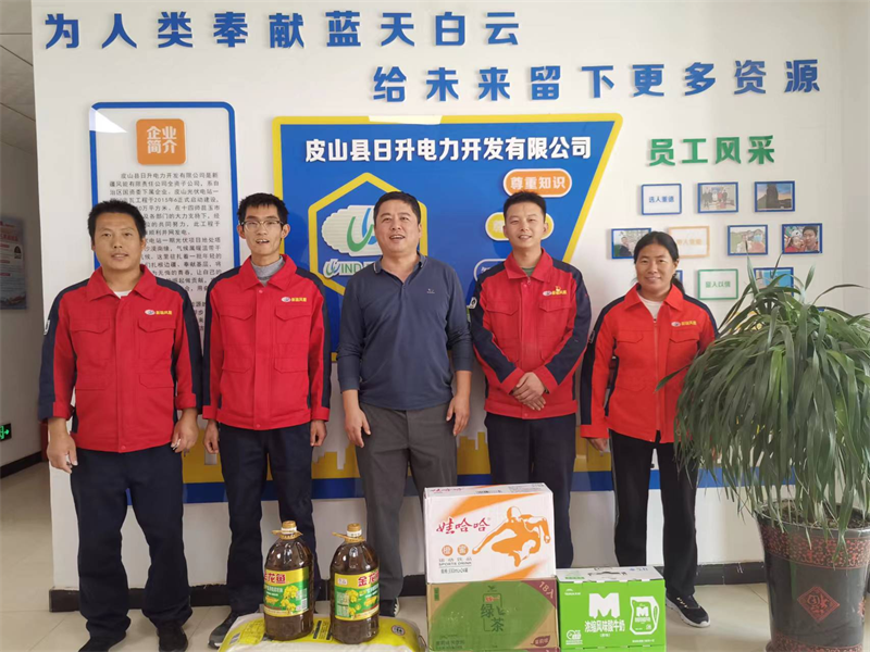 黄乐同志一行首先来到场站,实地了解和田区域光伏电站的生产运行情况,对和田区域光伏电站的整体生产情况表示肯定。他强调,场站要严格落实安全生产责任,落实安全防范措施,做好光伏发电设备的日常维护保养工作,干好每一件事,发好每一度电,为公司完成年度目标添砖加瓦。随后,黄乐同志代表公司向大家送上了问候与祝福,并发放慰问品,让大家感受到了公司的关怀。